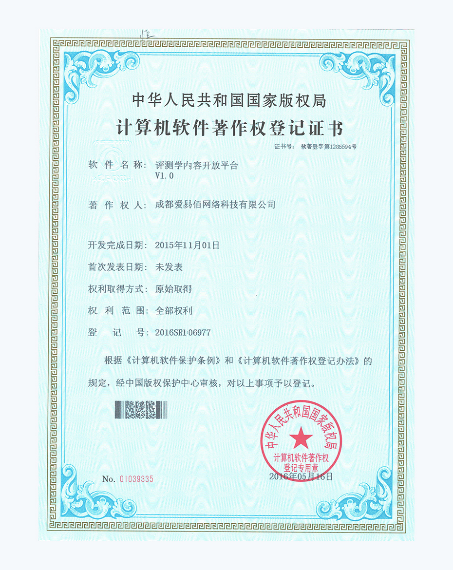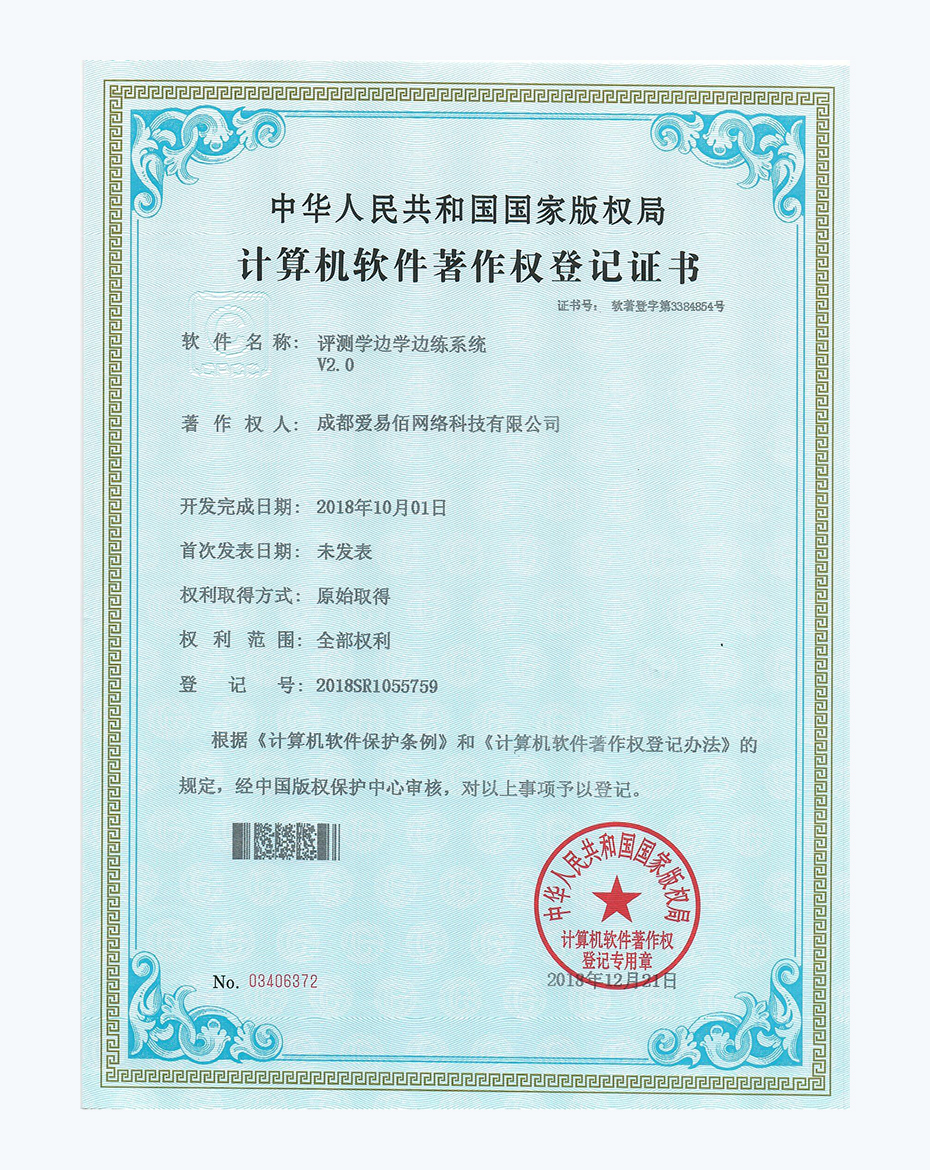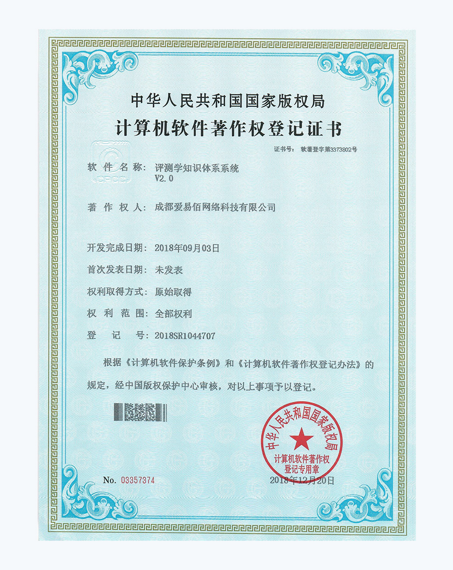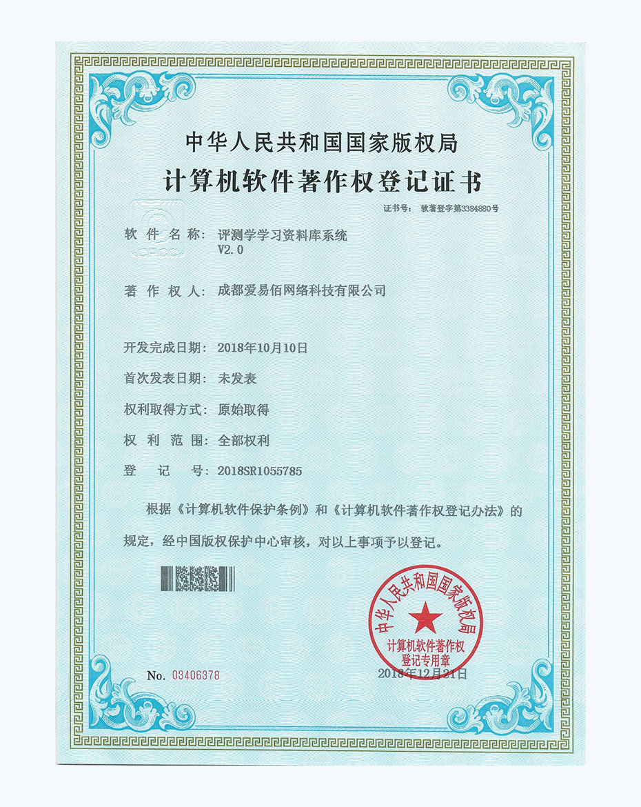 评测学在研发中获得7大专利发明保护,6大软件著作权证书,科研课题由省市迈向国家级,申报中央电教馆2017年度课题成功立项。